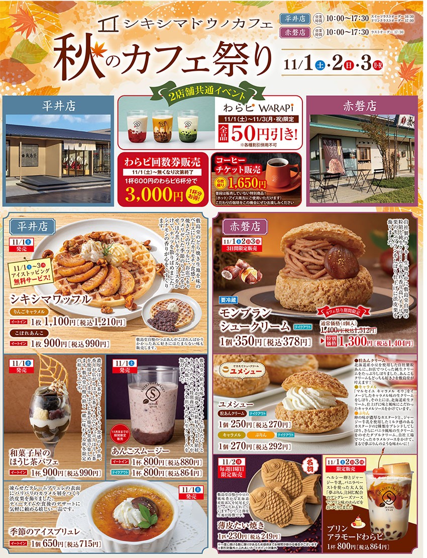 平井店・赤磐店限定で『秋のカフェ祭り』を開催いたします!