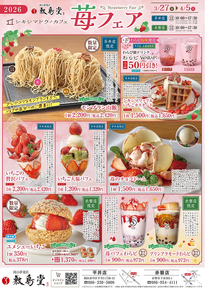 平井店・赤磐店限定「シキシマドウノカフェ 苺フェア」開催!