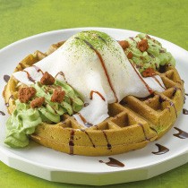カスタードの2種類をブレンドしてしぼり、自社工場でつくったカラメルソースをかけて、