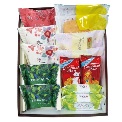 代表銘菓「夢二」や「いちご夢二」など敷島堂が自信をもってお勧めする詰合せです。 ※商品・詰合せ内容は予告なく変更する場合がございます。 予めご了承くださいませ。