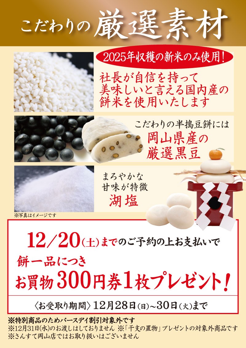 年末も近づきご多用の中お正月餅の準備はいかがでしょうか。