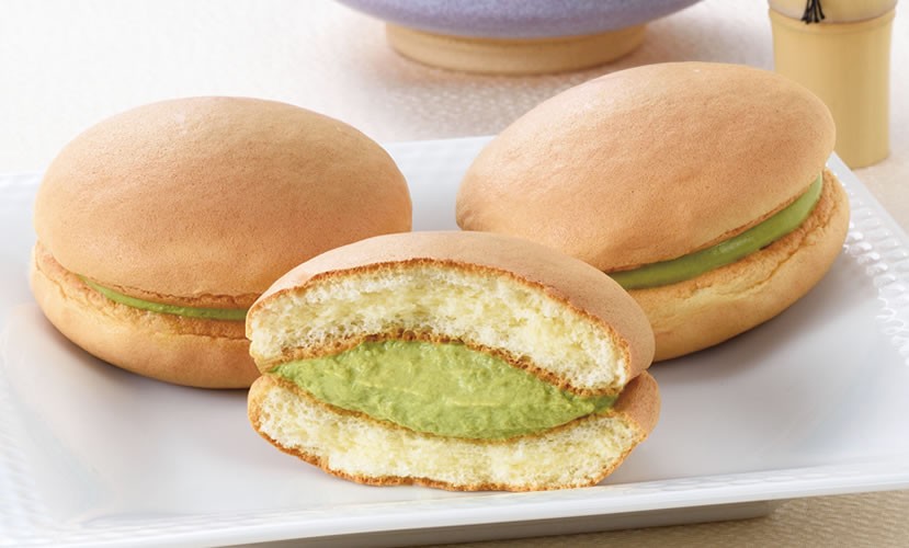 風味豊かな宇治抹茶と北海道産生クリームで つくった特製抹茶クリームを ふわふわの特製生地ではさんだ季節限定生スフレです。