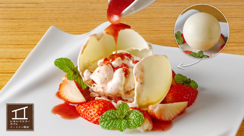 ・1枚 1,500円[1,650円] ※イートイン限定 チョコレートドームの中にはイートンメス(メレンゲと生クリームのイギリス発祥のスイーツ)が 入っていて、温かい苺のソースをかけてお召し上がりいただきます。 メレンゲのさくさく食感とチョコレートの濃厚さ、苺の甘酸っぱさが味わえ、 チョコレートが溶ける過程もお楽しみいただけます。