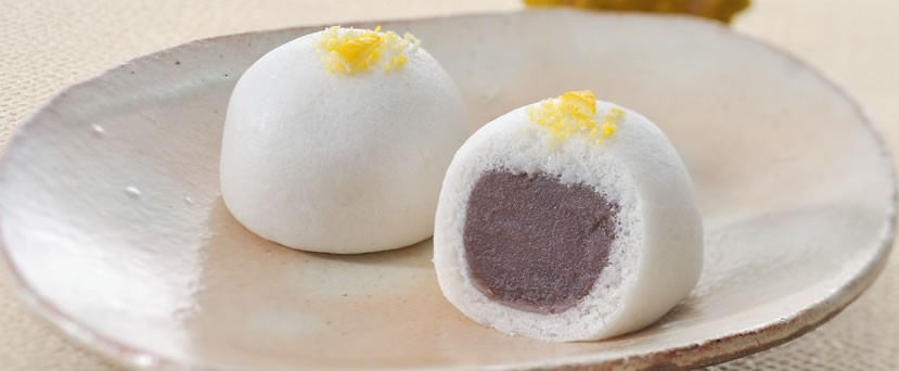上用まんじゅうの風味豊かな生地に、北海道産小豆を丁寧に炊いた口どけのよいこし餡を包み込み、柚子皮とほのかに色づくそぼろをお付けした冬の創作菓子です。