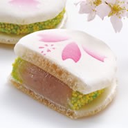 桜あん入りの柔らかいお餅を、桜の花をあしらった 麩焼き煎餅ではさみました。春限定の美味しさです。
